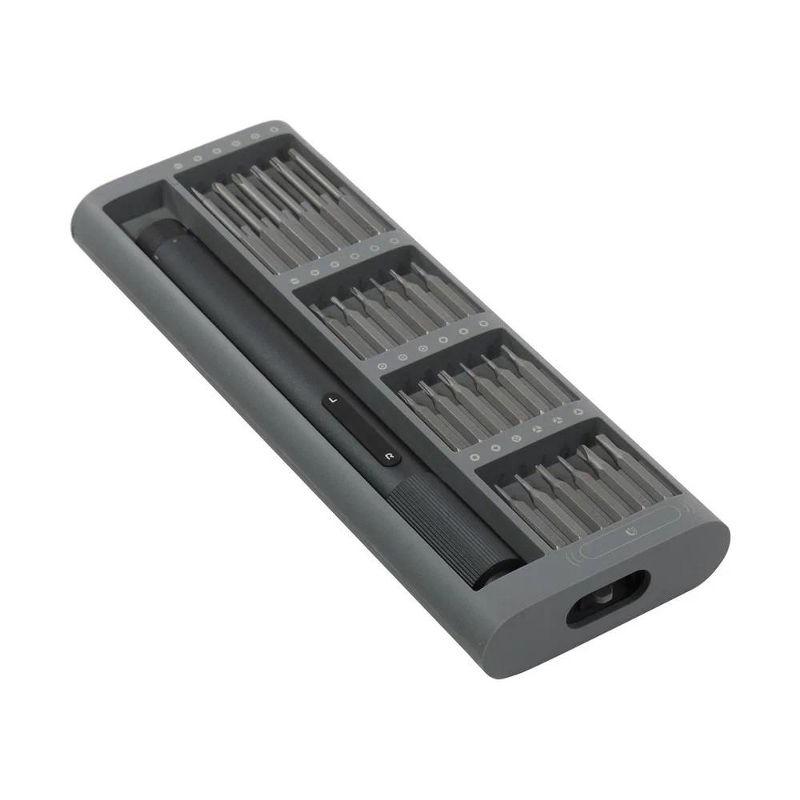 Xiaomi Electric Precision Screwdriver - набор который по достоинству оценят любители разбирать небольшие приборы. Электрическая отвёртка делает процесс ремонта действительно комфортным: не приходится напрягать предплечья, зависая в воздухе для ювелирного откручивания винтиков – теперь этим будет заниматься мощный магнитный двигатель на 170 оборотов в минуту с цельнометаллической коробкой передач, которая сможет закрутить всё, что нужно. Поможет в работе с разными деталями 24 стальных комплектных биты, начиная от шестигранной для игрушек, очков, камер и заканчивая всеми любимой насадкой “мерседес” для смартфонов.