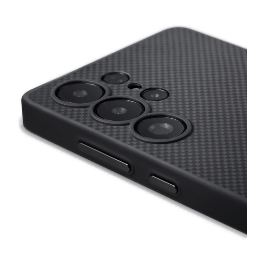 Но что важно, PITAKA PinButton Case остаётся невероятно лёгким и тонким, практически не изменяя габариты Samsung Galaxy. И это не преувеличение! Чехол добавляет всего 1,86 мм к габаритам смартфона и 34 гр веса. Он идеально прилегает к корпусу, не нарушая эргономику устройства, и не делает телефон громоздким, наоборот, подчёркивая его изящные формы. Конечно, в удобном доступе остаются и все разъёмы, чтобы вы могли пользоваться своим гаджетом так, как привыкли. И все эти преимущества собраны в лаконичном и строгом корпусе, который готов гармонично дополнить дизайн смартфона.
