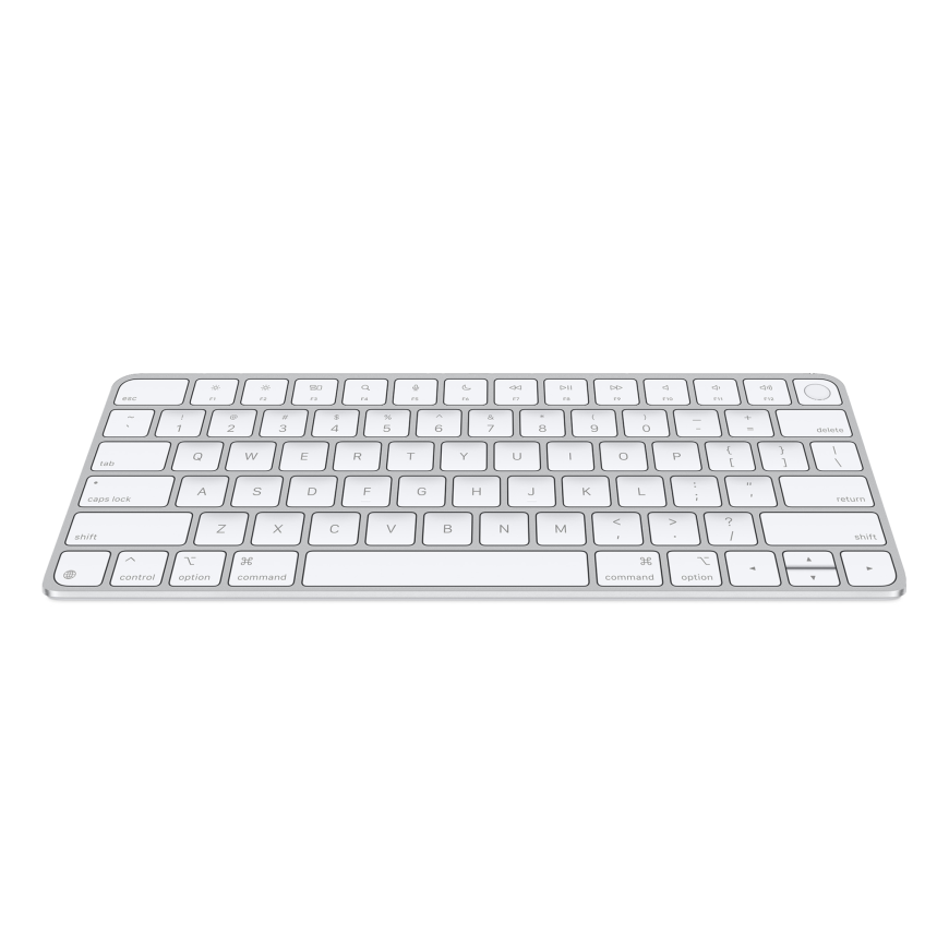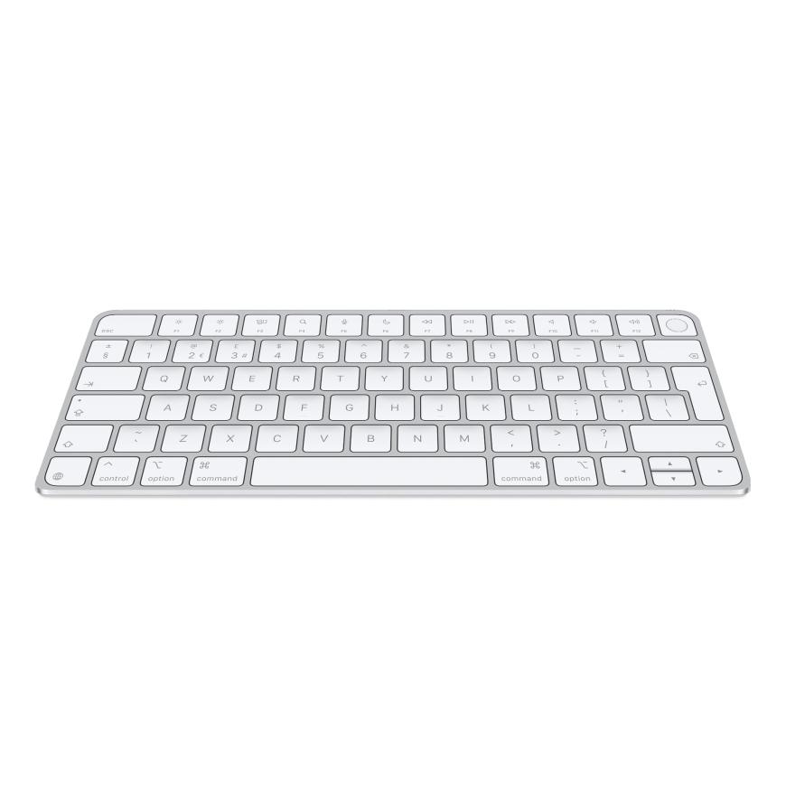 Оригинальная алюминиевая клавиатура от Apple со встроенным сканером отпечатка пальца. Помимо Touch ID, данная клавиатура отличается слегка изменённым дизайном, в сравнении с выпускавшимися ранее клавиатурами: она примечательна скруглёнными углами и новыми мультимедийными кнопками с актуальными пиктограммами. Корпус клавиатуры сделан из анодированного алюминия, а для работы аксессуара используется Bluetooth, а встроенный аккумулятор обеспечит до месяца работы.