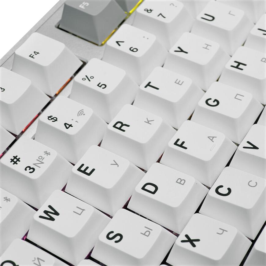 Клавиши Lemokey L3, как и подобает премиальной клавиатуре, выполнены из PBT, даже лучше – это Cherry double-shot PBT. Они чрезвычайно износостойкие, что исключает их стирание даже после длительного использования. Текстура поверхности клавиш приятна на ощупь и предотвращает скольжение пальцев, что делает набор текста или игру максимально комфортными, а подсветка не просвечивается через сами кейкапы, поэтому в темноте каждый символ отчётливо виден.