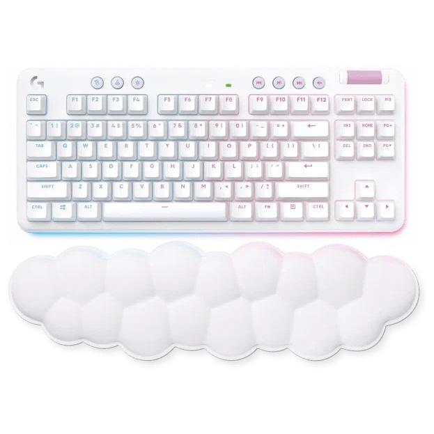 С клавиатурой Logitech G715 под вашими руками буквально будет облако. Мягкое, но упругое. Входящая в комплект подставка для кистей рук позволяет не только с комфортом набирать текст на протяжении всего дня, но и препятствует развитию туннельного синдрома и снижает усталость.