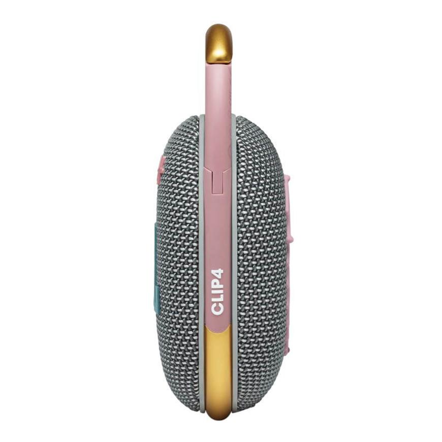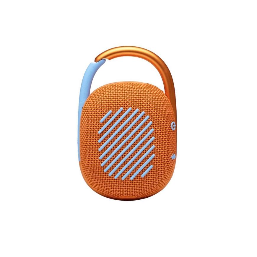 Clip 4 продолжает серию ультрапортативных беспроводных колонок JBL. За счёт встроенного карабина акустику можно легко закреплять на сумках, элементах велосипеда или скутера, а также вешать практически куда угодно, при этом Clip 4 весит всего 240 граммов.