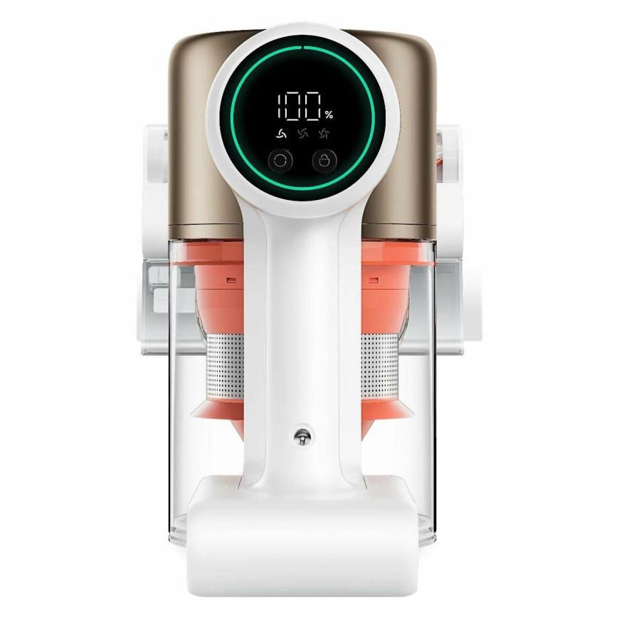 Xiaomi Vacuum Cleaner G10 Plus – по настоящему умное и удобное устройство. На верхней части находится интерфейс, благодаря которому можно следить за режимом работы и состоянием аккумулятора. Кстати, тут удалось решить одну из главных проблем беспроводных пылесосов, а именно проблему с батареей. Устройство может эффективно очищать жилище на протяжении 65 минут, без подзарядки. А даже если этого мало, можно просто снять один аккумулятор и использовать другой, который придётся добрать отдельно.
