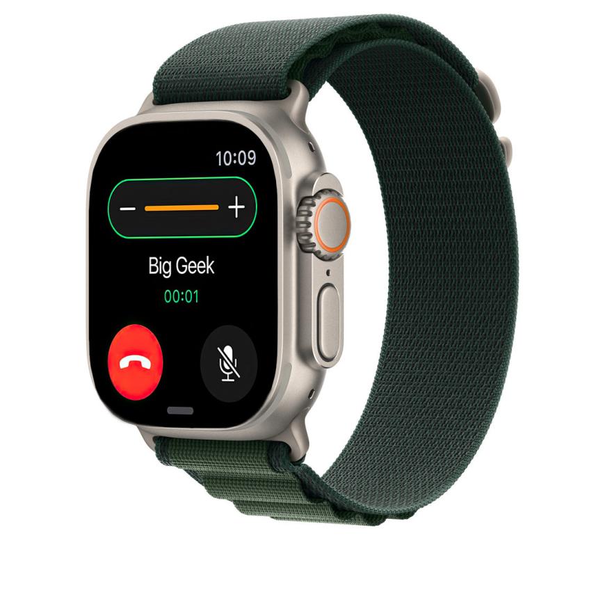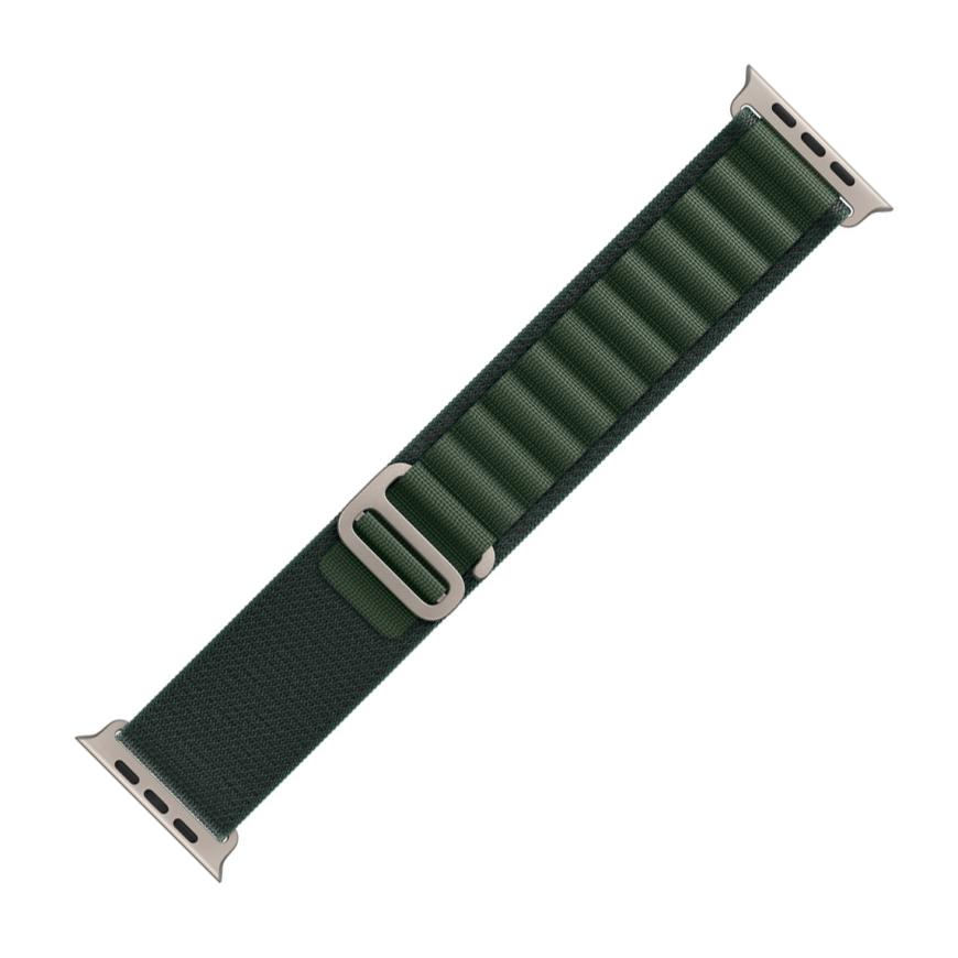 Браслет Apple Alpine Loop, тёмно-зелёный со светлой пряжкой, для Apple Watch 44, 45, 46 мм и Ultra 2–3 (дизайн 2024) Браслет «Гора» из переработанного полиэстера с G-образной застёжкой из титана