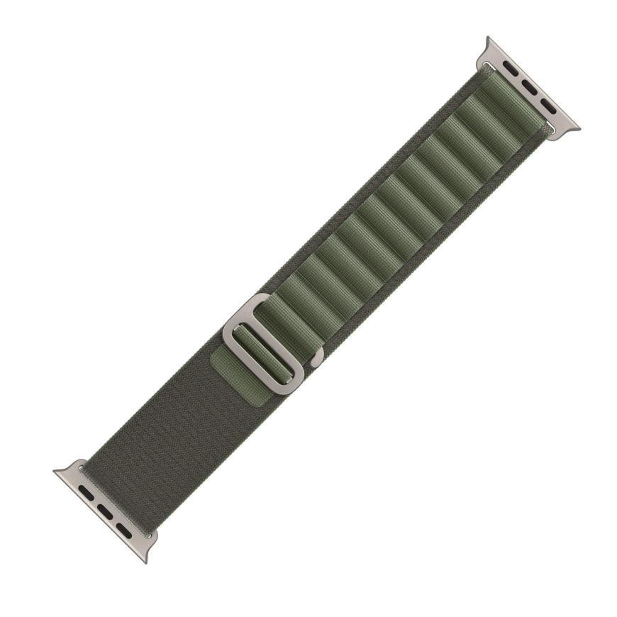 Браслет Apple Alpine Loop, зелёный со светлой пряжкой, для Apple Watch 44, 45, 46 мм и Ultra 2–3 (дизайн 2022) Браслет «Гора» из полиэстера с G-образной застёжкой из титана