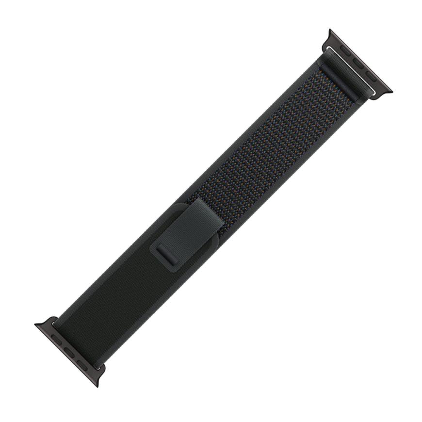 Браслет Apple Trail Loop, чёрный с чёрной пряжкой, для Apple Watch 44, 45, 46 мм и Ultra 2–3 (дизайн 2024) Нейлоновый браслет «Тропа» с текстильной застёжкой