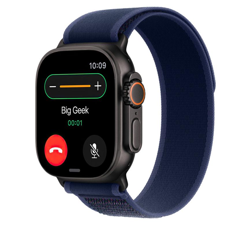 Браслет Apple Trail Loop, синий с чёрной пряжкой, для Apple Watch 44, 45, 46 мм и Ultra 2–3 (дизайн 2024) Нейлоновый браслет «Тропа» с текстильной застёжкой