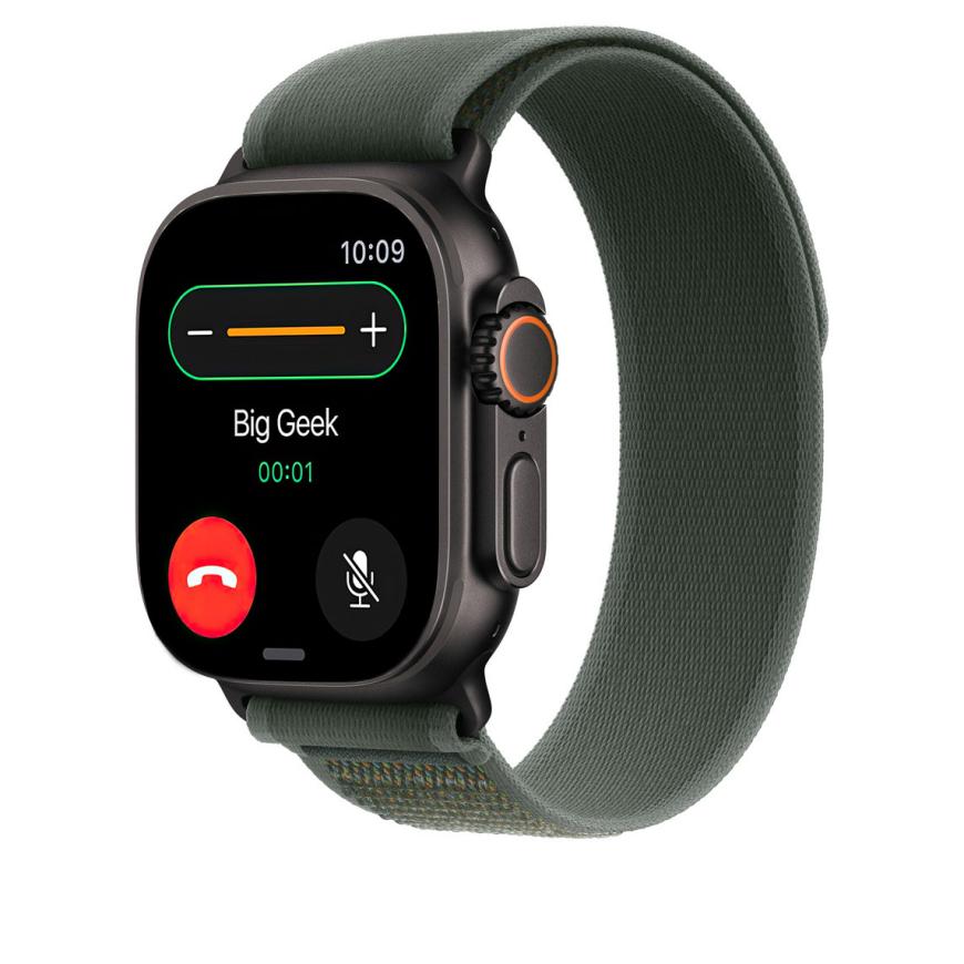 Браслет Apple Trail Loop, зелёный с чёрной пряжкой, для Apple Watch 44, 45, 46 мм и Ultra 2–3 (дизайн 2024) Нейлоновый браслет «Тропа» с текстильной застёжкой