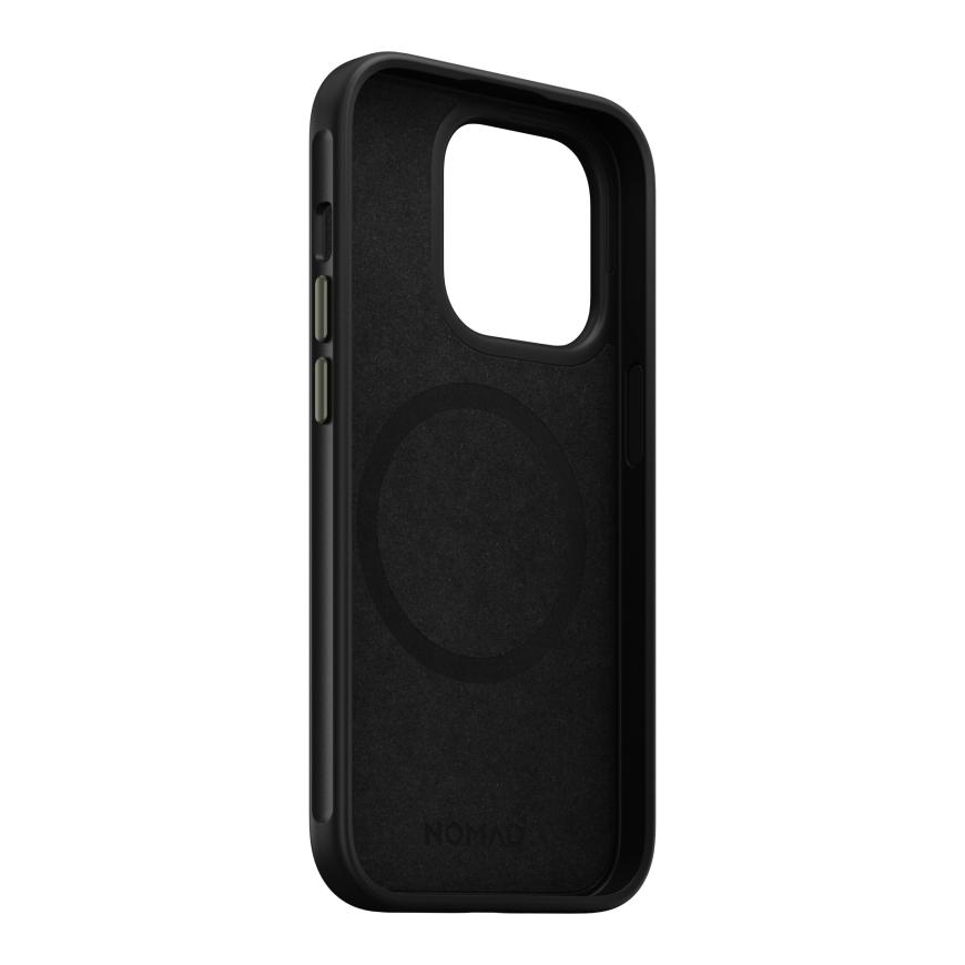 Эффектный и надёжный чехол от Nomad, сделанный по гибридной технологии. Он совместим с беспроводными зарядными устройствами и аксессуарами MagSafe, а за счёт мощных магнитов обеспечивается надёжное соединение с магнитными держателями, зарядными устройствами, кардхолдерами и другими аксессуарами.