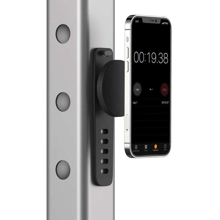 Тренировка - дело полезное но довольно утомительное, особенно если это кардио, требующее час на дорожке или велотренажере. Скрасить действо, конечно, может смартфон, который и подскажет как тренироваться, и покажет интересное видео, под которое время пролетит незаметно. Чтобы пользователь мог смотреть в смартфон и при этом не отвлекаться от занятий, в Belkin создали держатель Magnetic Fitness Mount с которым гаджет всегда рядом.