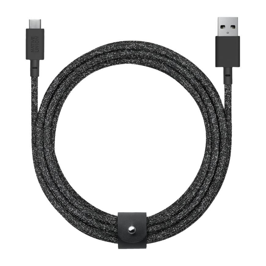 Аксессуары от Native Union всегда отличаются высочайшим качеством материалов, использованием самых передовых технологий и элегантным дизайном. И здесь нет неважных мелочей - каждая деталь должна быть продумана, чтобы ваше взаимодействие с привычными гаджетами было максимально удобным и прогнозируемым. А ещё этот производитель готов предусмотреть любые варианты использования, ведь бывает что обстоятельства преподносят довольно необычные задачи. Например, как организовать зарядку вашего гаджета, если ближайшая розетка находится далеко от вас? Можно, конечно, взять очередной громоздкий удлинитель, но есть решение интереснее - достаточно взять в помощь Native Union Belt Cable с размере XL. А это не просто длинный, а очень длинный (целых 3 метра!) кабель с разъёмами USB-C — USB-A.