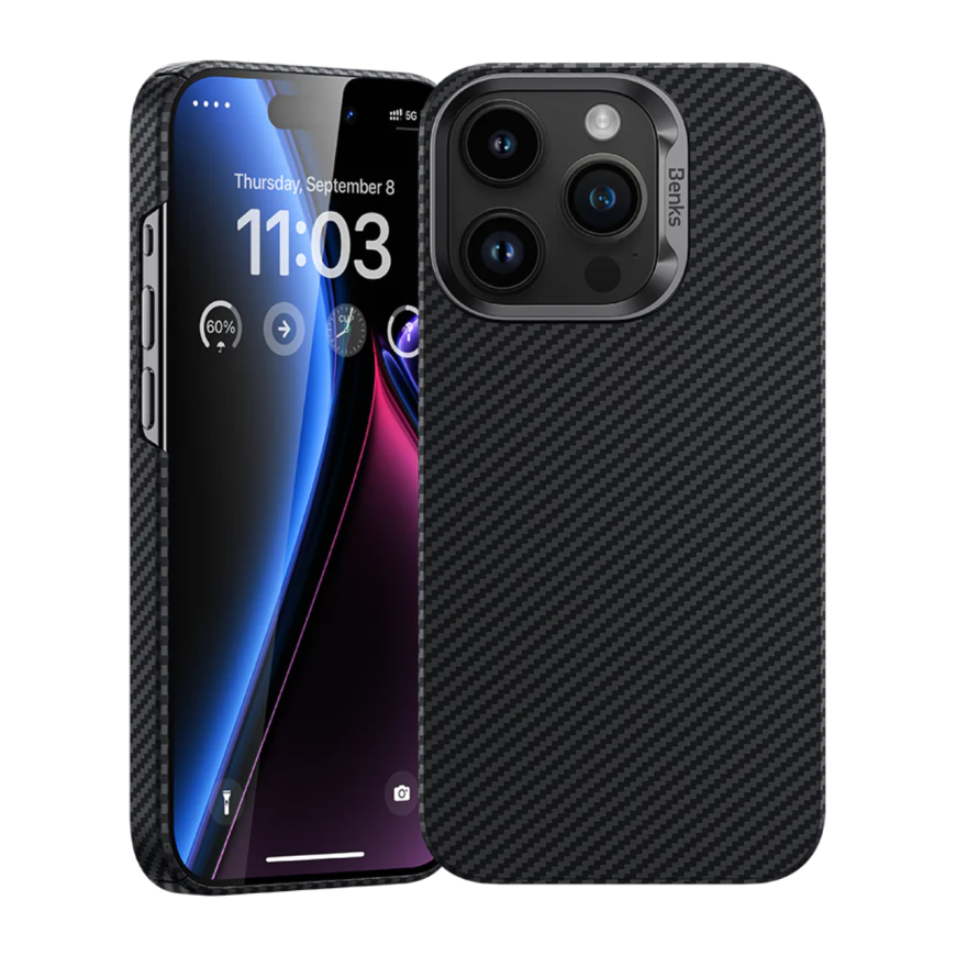 Benks ArmorAir изготовлен из 600D Dupont Kevlar — арамидного волокна, известного своей устойчивостью к нагрузкам, пластичностью и минимальным весом. Этот материал применяется в авиации, автомобилестроении и даже космической отрасли, где особенно важны надёжность и долговечность. Для Benks же он раскрывает свои качества по-новому, становясь основой для лёгкого, но очень прочного чехла толщиной всего 1,4 мм.