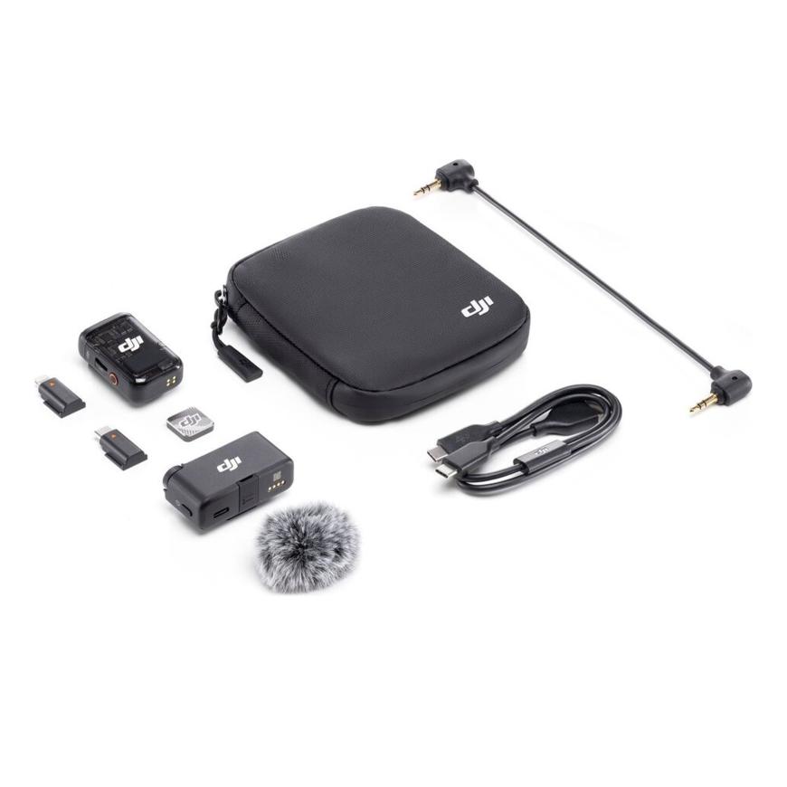 Передатчик способен работать на расстоянии до 250 метров (FCC) или 160 метров (CE) от передатчика на относительно открытой местности. Встроенная память передатчика позволяет хранить до 14 часов 24-битного аудио с частотой 48 кГц. Также к беспроводным микрофонам можно подключать петличные микрофоны DJI Lavalier Mic (приобретаются отдельно).