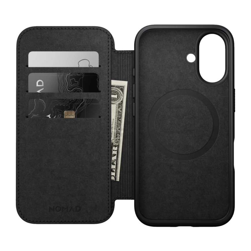 Владельцы iPhone часто относятся к чехлам скептично, ведь боятся что он например закроет магниты MagSafe, и спокойно закрепить смартфон для просмотра сериала не получится. Но, владельцам Nomad Modern Leather Folio это точно не угрожает. Этот аксессуар ничего не отбирает, а только даёт. Имеется поддержка MagSafe, отчего использовать его можно вместе со своими любимыми беспроводными зарядками, держателями и т.д. Кстати, помимо этих магнитов, есть ещё и магнитная застёжка, удерживающая крышку чехла, и которую при желании можно вынуть через отсек для наличных, сделав свой аксессуар максимально минималистичным.