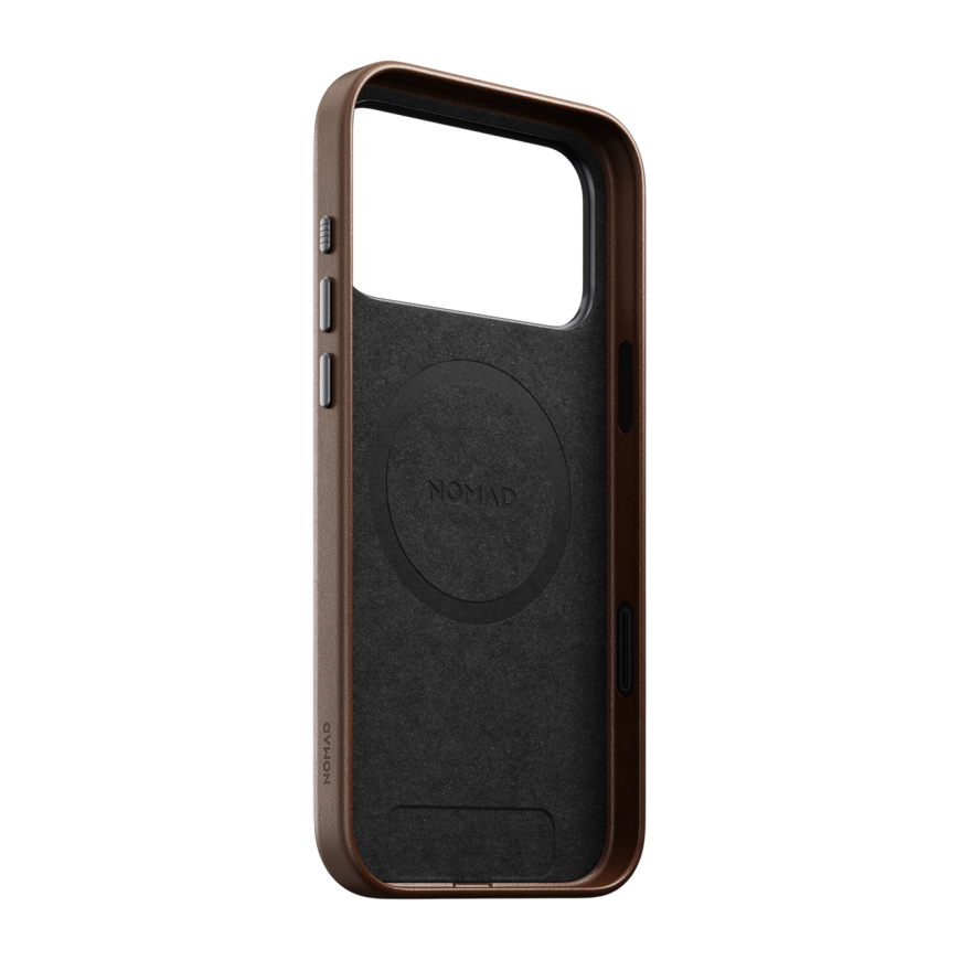 Чехол выполнен из full-grain кожи, одного из самых качественных типов. Она сохраняет свою натуральную текстуру, что делает её невероятно прочной и приятной на ощупь. Со временем кожа покрывается благородной патиной, обретая уникальный характерный вид, как старинная книга, хранящая свои истории. Nomad выбирает материалы, которые становятся лучше с каждым днём, доказывая, что долговечность и элегантность могут идти рука об руку.