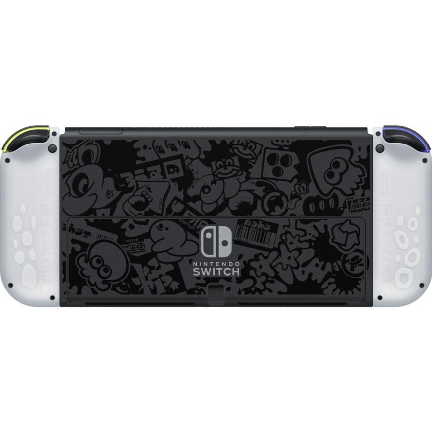 Приставка чёрного цвета оформлена в стиле игры Splatoon 3, а задняя крышка украшена стилизованными узорами. Левый контроллер выполнен в синем, а правый — в зелёном цвете, под цвета команд игры. На лицевой стороне корпуса нанесено стилизованное ярко-желтое пятно.
