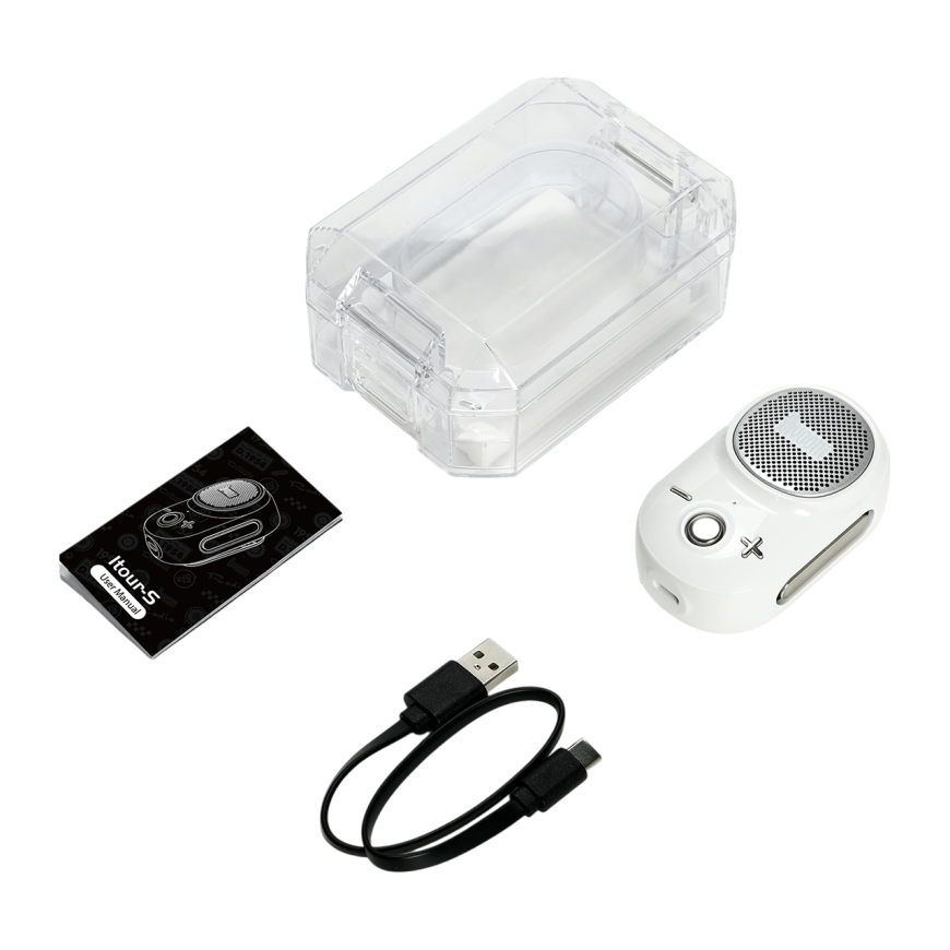 С классом защиты IP67 Itour-S не боится дождя, пыли, грязи и даже кратковременного погружения в воду на глубину до 1 метра, что делает ее идеальной для походов, пробежек, пляжного отдыха и прогулок. Но рыб не любит – они не могут аплодировать колонке. В отличии от открытого пространства, где 33-миллиметровый динамик выдаёт 4.2 Ватта звука, радуя чистым звуком владельца и его друзей. Энергии этой малютки хватит даже для небольшой вечеринки! По сравнению с большинством компактных колонок, Divoom Itour-S отличается и очень приятной комплектацией. Тут и кабель для зарядки, и советы по использованию, и собственный прозрачный чехол для дополнительной защиты в любых путешествиях.