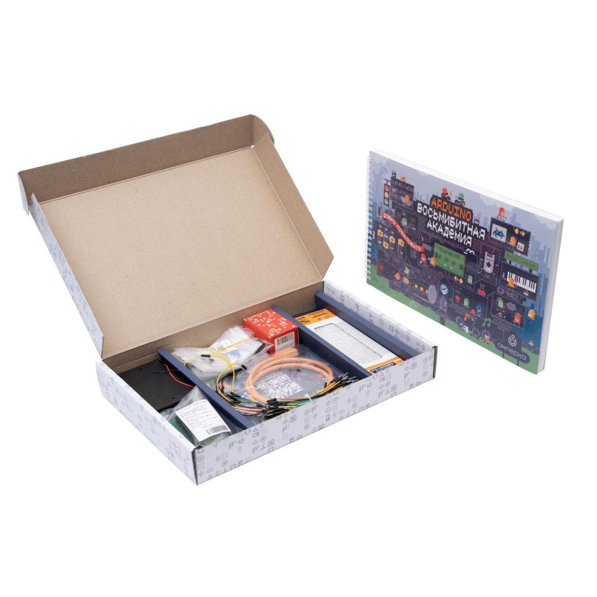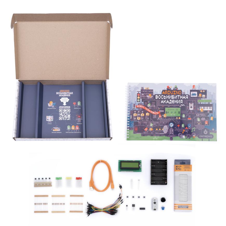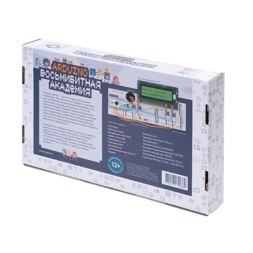 Давно мечтаете создавать крутые гаджеты и самостоятельно их программировать? Слышали про Arduino, но не решались начать, думая, что всё это очень сложно и занимает много времени? Тогда сова от «Амперки» спешит к вам с приглашением в «Восьмибитную академию»! Забудьте о скучных учебниках — здесь вас ждут увлекательные эксперименты и целый научный центр, только у вас дома! Хотите подружиться с роботами и понимать их язык? С конструктором «Arduino. Восьмибитная академия» вы не только соберёте множество классных электронных штук, но и разберётесь, как они работают изнутри — от первого выбранного транзистора до написания целого кода. И ничего не бойтесь, тут все увлечены своим делом и готовы вам помочь!