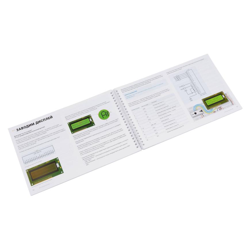 Внутри красочно оформленной коробки (кстати, отличный вариант подарка!) вас ждёт целый арсенал юного робототехника. Плата Iskra Nano, основанная на популярной платформе Arduino, станет сердцем ваших творений. К ней присоединятся разноцветные светодиоды, различные резисторы и транзисторы, датчики, ЖК-дисплей и множество других электронных компонентов. Не пугайтесь, если пока не знаете, что с ними делать – подробная инструкция и увлекательные задания проведут вас по всем этапам сборки и программирования. А ещё в комплекте есть макетная плата, провода и даже батарейный отсек – всё, чтобы сразу начать творить. И никакой сложной пайки – всё собирается по принципу конструктора. Или разбирается, если пришла новая идея!