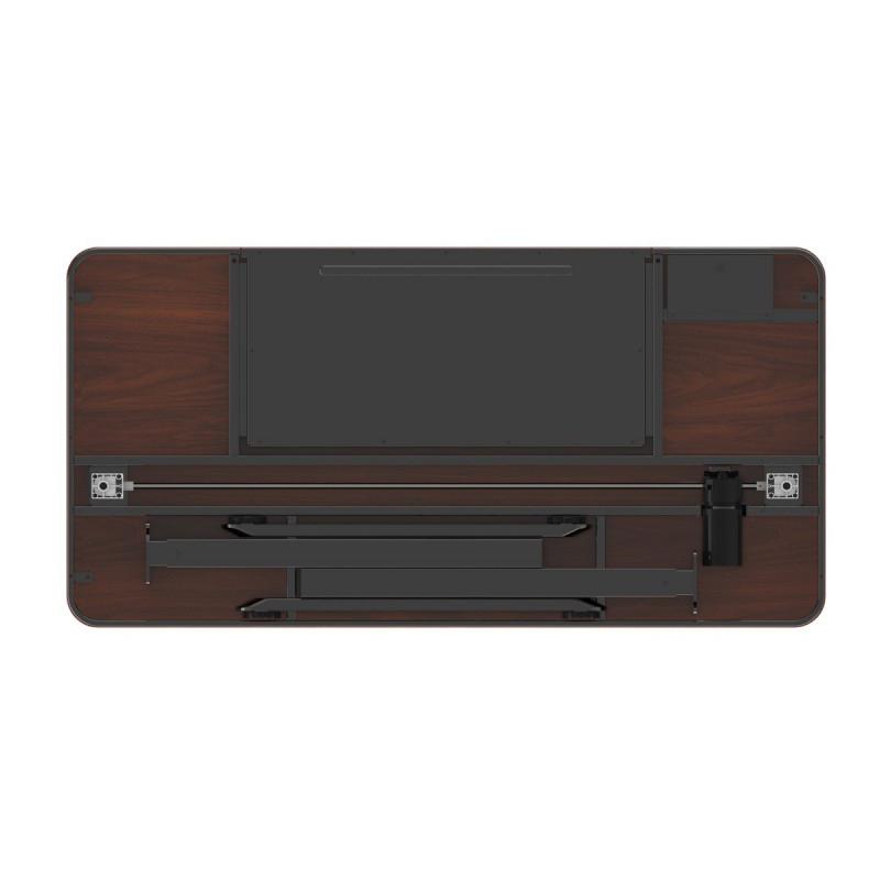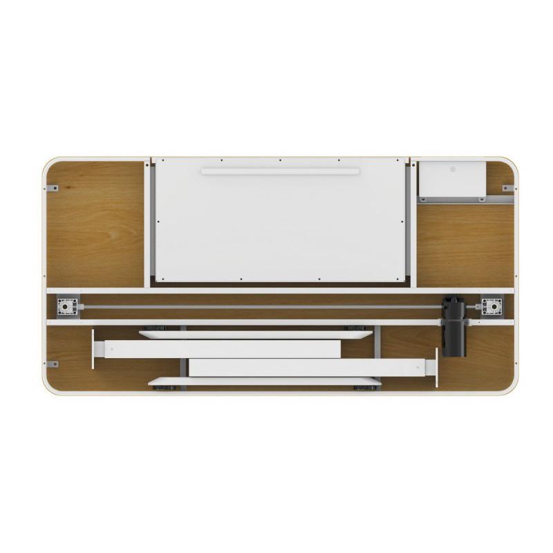 Управление приводом стола – электронное. Электромотор обеспечивает плавное движение вверх/вниз со скоростью 2,5 см/с при низком уровне шума (менее 50 дБ). Есть четыре кнопки для предустановок и даже дисплей, отображающий высоту. На передней панели расположены встроенные порты USB-C и USB-A для удобной зарядки гаджетов.