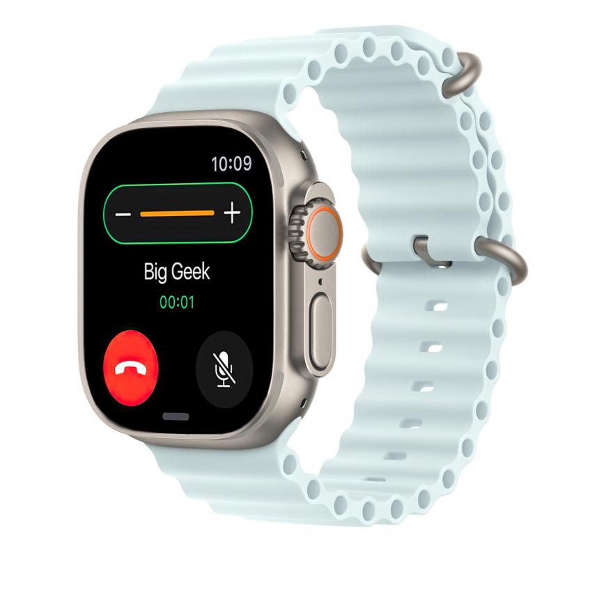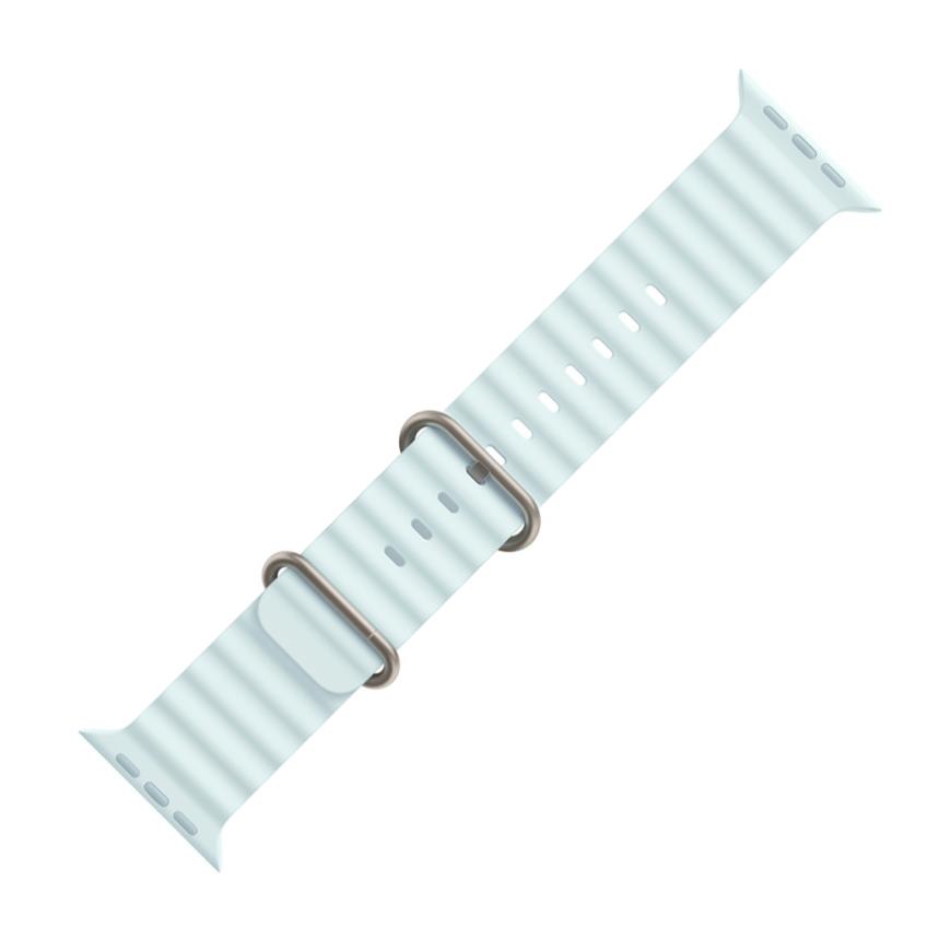 Ремешок Apple Ocean Band, голубой со светлой пряжкой, для Apple Watch 44, 45, 46 мм и Ultra 2–3 (дизайн 2024) Ремешок «Океан» из фторэластомера с застёжкой из титана