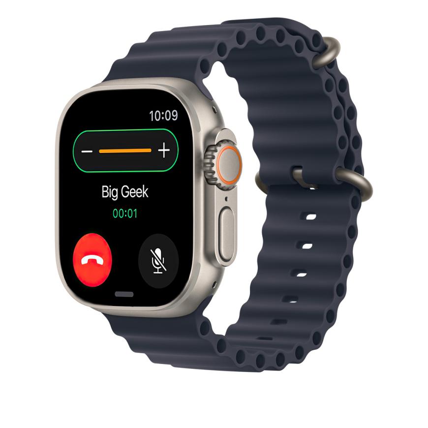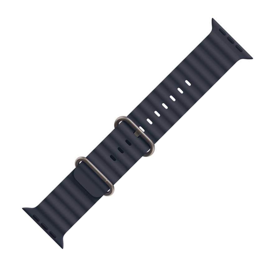Ремешок Apple Ocean Band, тёмно-синий со светлой пряжкой, для Apple Watch 44, 45, 46 мм и Ultra 2–3 (дизайн 2024) Ремешок «Океан» из фторэластомера с застёжкой из титана