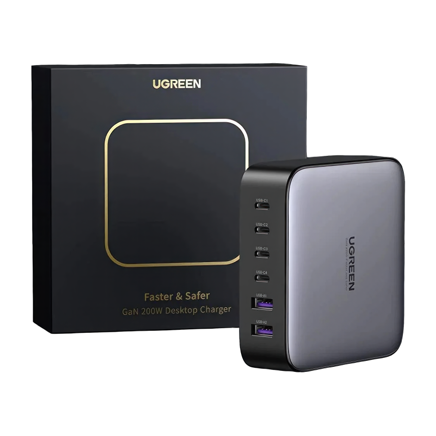Ищете зарядное устройство, способное быстро зарядить сразу несколько устройств? Nexode CD271— это именно то, что вам нужно. Это флагманская зарядная станция компании UGREEN на основе полупроводников из нитрида галлия (GaN). Благодаря мощности в 200 Ватт и поддержке самых современных технологий вы сможете максимально оперативно зарядить свой ноутбук, планшет, смартфон и ещё три других гаджета, причём одновременно. В комплекте с зарядной станцией идёт качественный USB-C кабель на 1,5 метра.