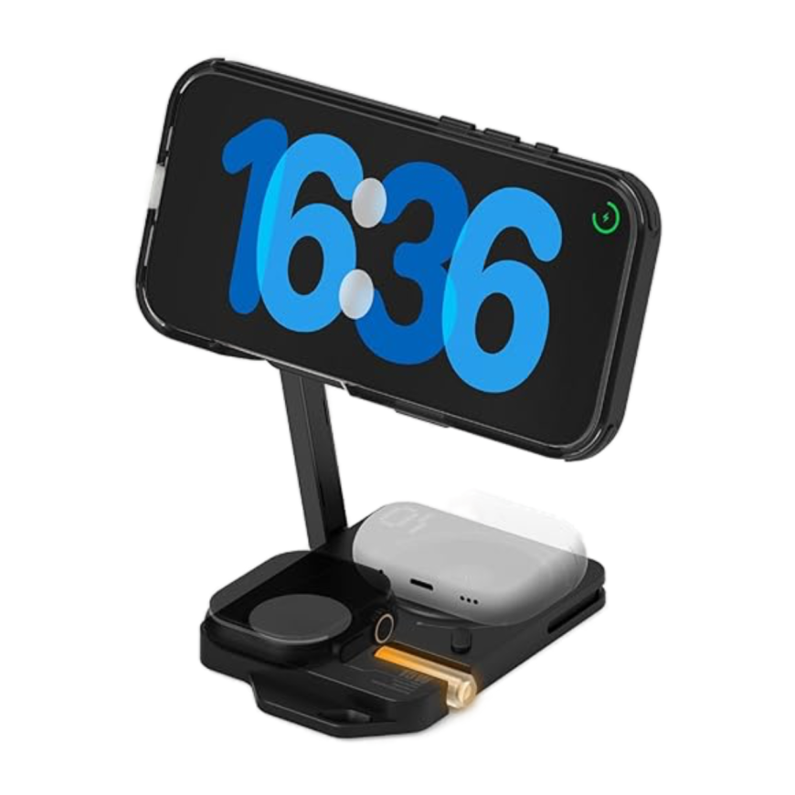 Aulumu M01 Charging Station — это больше, чем просто складная зарядная станция, это произведение технологического искусства, выполненное в футуристическом стиле и призванное максимально упростить процесс подзарядки ваших «яблочных» девайсов. Складная конструкция устройства делает его невероятно удобным как для стационарного использования на рабочем столе, так и для путешествий.