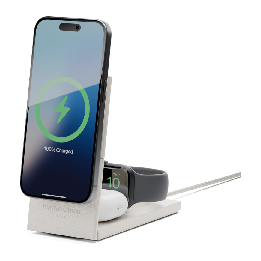 Не секрет, что компания Apple создает не просто гаджеты, а целую экосистему, продуманную до мельчайших деталей. Но даже в этой гармонии возникает вопрос: как удобно и красиво заряжать все устройства? Здесь на помощь приходит Rise от бренда Native Union — складная зарядная станция 3-в-1, сертифицированная MFi. Она не только решает проблему удобной зарядки сразу трех устройств, но и сама становится стильным аксессуаром, который отлично впишется в интерьер, будь то рабочий стол, прикроватная тумбочка или уютный уголок в гостиной.