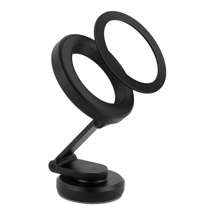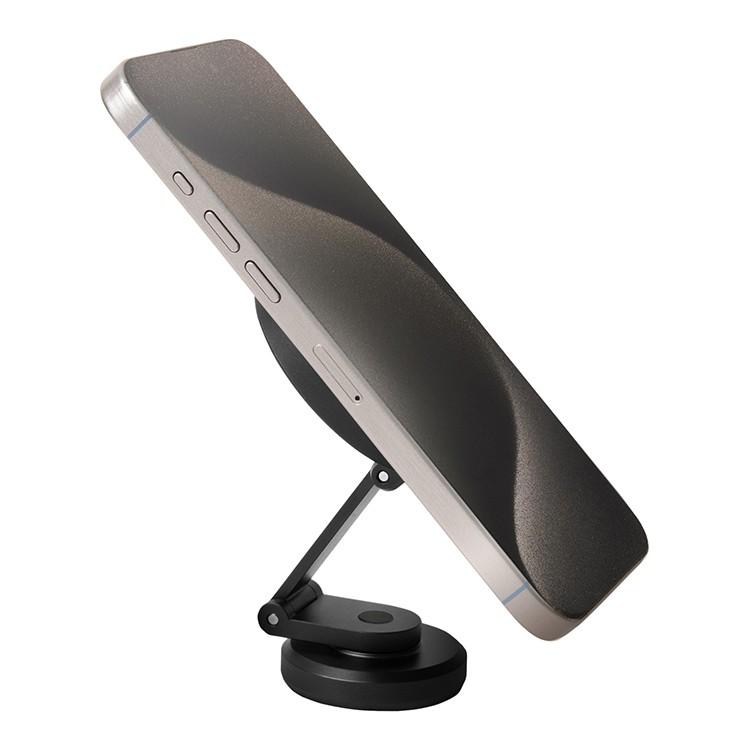 Сам смартфон закрепить на держателе не менее просто, всего-лишь нужно поднести его и магниты MagSafe сделают всё сами. И это даёт максимальную вариативность использования. Ведь гаджет можно крепить как горизонтально, так и вертикально. При том, сам держатель может вытягиваться и крутиться вокруг своей оси. По сути, пользователь получает ультимативный кронштейн для своего смартфона.