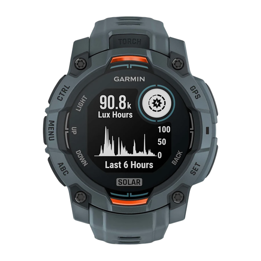 Спортивные часы Garmin Instinct 3, 45 мм, Solar, силиконовый ремешок сумеречного цвета Безель цвета «нео тропик», дисплей Solar со стеклом Power Glass. Ремешок с классической застёжкой — на запястье обхватом 137–204 мм