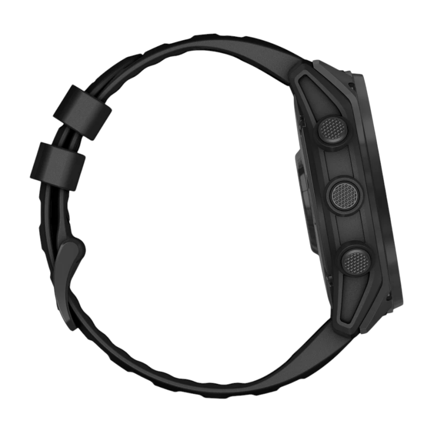 Спортивные часы Garmin tactix 8, 51 мм, Solar, чёрный силиконовый ремешок Безель из титана, дисплей Solar со стеклом Power Sapphire. Ремешок с классической застёжкой — на запястье обхватом 127–210 мм
