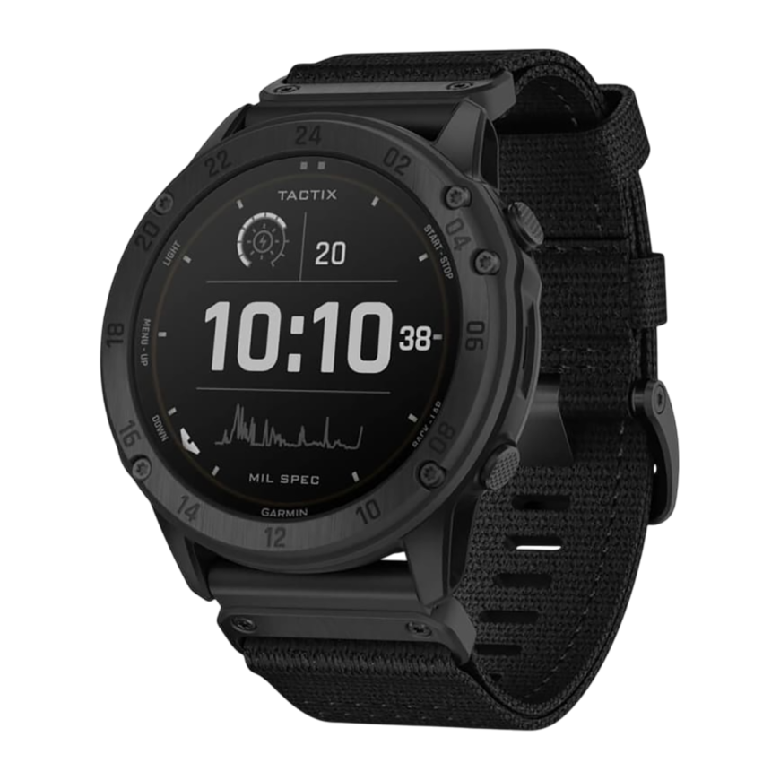 Часы спроектированы для серьёзных нагрузок. Прочный полимерный корпус, титановый безель с DLC-покрытием и сапфировое стекло защищают устройство от ударов, пыли, воды и царапин. Устойчивость к экстремальным условиям подтверждена военным стандартом MIL-STD-810. Это не просто спортивные часы – это инструмент, рассчитанный на выживание.