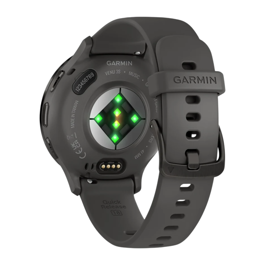 Спортивные часы Garmin Venu 3S, 41 мм, серый силиконовый ремешок Безель из нержавеющей стали сланцевого цвета, корпус серого цвета, AMOLED-дисплей со стеклом Gorilla Glass. Ремешок с классической застёжкой — на запястье обхватом 110–175 мм