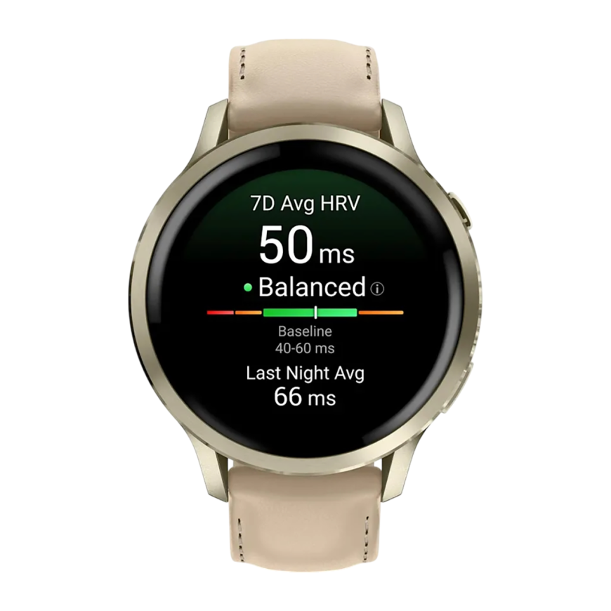 Garmin Venu 4 помогают контролировать состояние здоровья в режиме 24/7. Они отслеживают частоту сердечных сокращений и вариабельность сердечного ритма. Устройство также предоставляет данные об уровне кислорода в крови, что полезно при занятиях спортом. Часы отслеживают женское здоровье (цикл, овуляцию и фертильность), а также анализируют качество сна. Ну и само собой устройство непрерывно отслеживает базовую физическую активность: считают шаги, измеряют пройденное расстояние и фиксируют потраченные калории в течение дня.