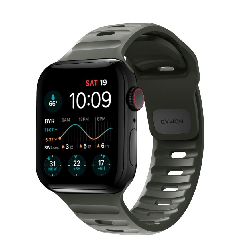 При разработке Nomad Sport Band, дизайнеры марки сфокусировались на милималистичном дизайне, нужного для сохранения низкого веса и отличной вентиляции, которая требуется во время занятий спортом. Вырезы на основной части ремешка и регулировка длины увеличивают приток воздуха и гибкость, делая его идеальным спутником для ваших тренировок.
