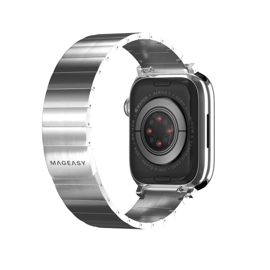 Проблемой множества металлических ремешков являются неприятные ощущения при носке, ввиду “неповоротливости” материала. Но, в MAGEASY Maestro M эту проблему удалось решить. Звенья примечательный гладкой матовой полировкой, а самое главное – легко убираются с помощью комплектного инструмента, предоставляя возможность регулировать обхват. Ну а после выбора необходимой длины, ремешок можно легко застегнуть, с помощью стильной магнитной застёжки.