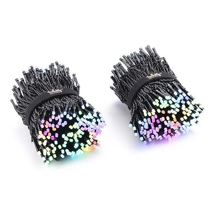 Данная гирлянда серии Twinkly Strings состоит из двух "веток" и в общей сложности имеет 750 ярких RGB-светодиодов с линзами, которые существенно усиливают яркость каждого элемента. Такого количества светодиодов хватит даже для оформления большой елки. Светодиоды расположены с интервалом 8 сантиметров. Модель подключается по Bluetooth или Wi-Fi и может использоваться не только в помещениях, но и на улицах, благодаря влагозащите по стандарту IP44.