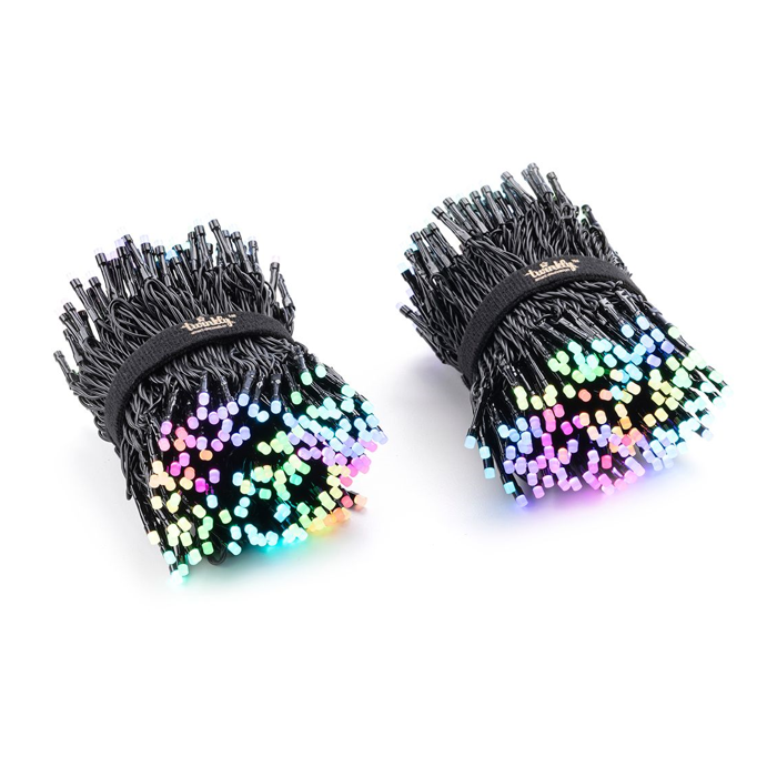 Данная гирлянда серии Twinkly Strings состоит из 600 ярких RGB-светодиодов с линзами, которые существенно усиливают яркость каждого элемента. Светодиоды расположены с интервалом 8 сантиметров. Модель подключается по Bluetooth или Wi-Fi и может использоваться не только в помещениях, но и на улицах, благодаря влагозащите по стандарту IP44.