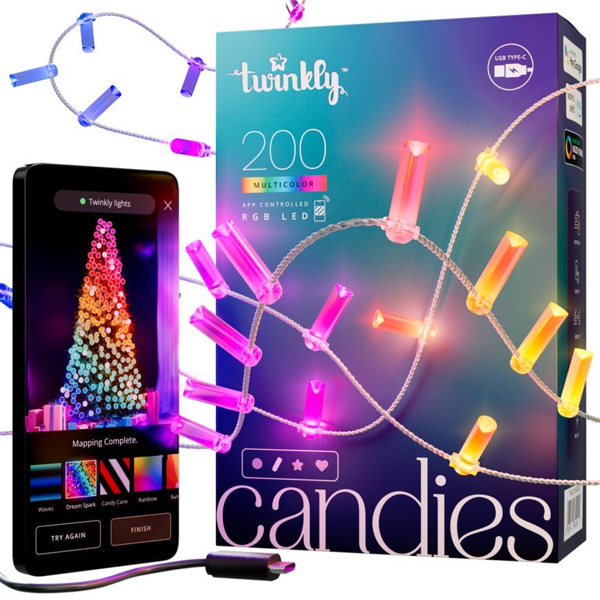 Twinkly Candies – это серия умных гирлянд с предельно простым подключением и настройкой. Вам понадобится лишь смартфон и немного креативности, чтобы оформить свой дом к празднику так, что все гости не забудут этот вечер. Море эффектов, синхронизация с музыкой и другие умные функции делают данную серию идеальным способом зажечь на Новый год или любой другой праздник!