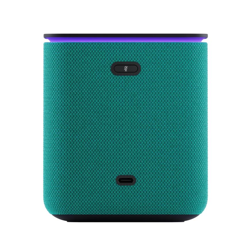 Приятный корпус с тканевой отделкой, доступный в разных расцветках текстильной части, не только придает колонке стильный внешний вид, но и создает приятные тактильные ощущения. Он также защищает динамики и слегка смягчает звук, а встроенный экран эффектно светится прямо на текстильной стороне.