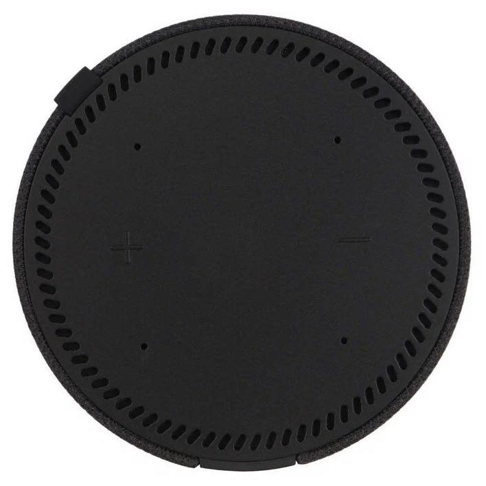 Колонка выполнена в лаконичном дизайне в виде небольшой «шайбы», обтянутой приятной сетчатой тканью. Она совсем небольшая, поэтому её легко установить в любом месте: на полке, столе или прикроватной тумбочке. И здесь плюсом будет отсутствие сложных интерфейсов - ничто не помешает сделать её частью даже классического интерьера. Лишь на верхней грани можно увидеть сенсорные кнопки для регулировки громкости и управления голосовым ассистентом.