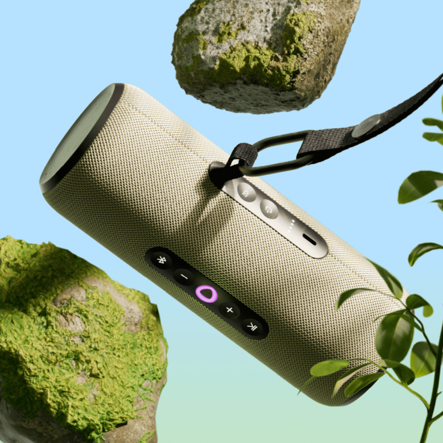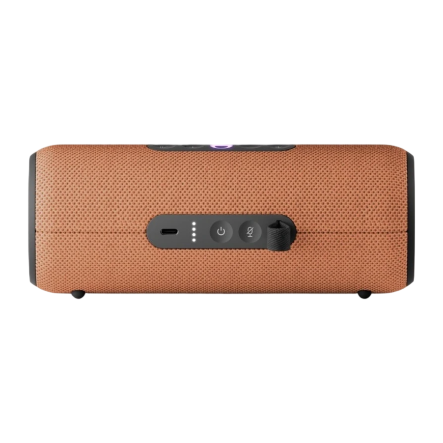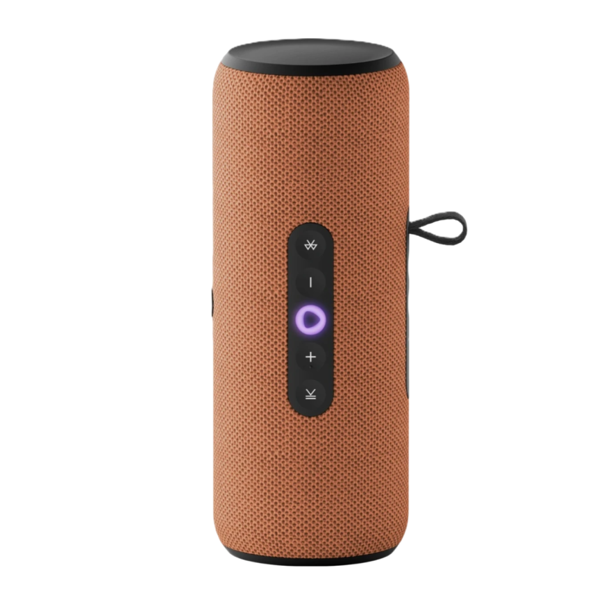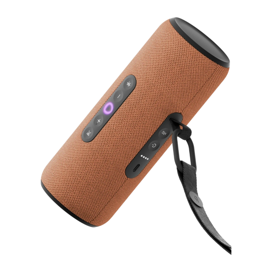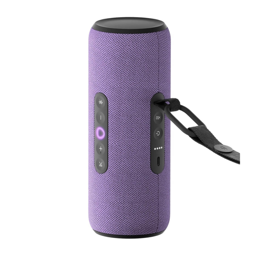 Колонка защищена от пыли и воды и соответствует классу IP67. Корпус у колонки довольно компактный, его длина составляет 20 см, а диаметр – 8. Вес портативной станции составляет 700 граммов. Приятная тканевая отделка дополняет элементы из матового пластика. С помощью специальной петли можно прикрепить комплектный кистевой ремешок с карабином, а можно и любой другой.