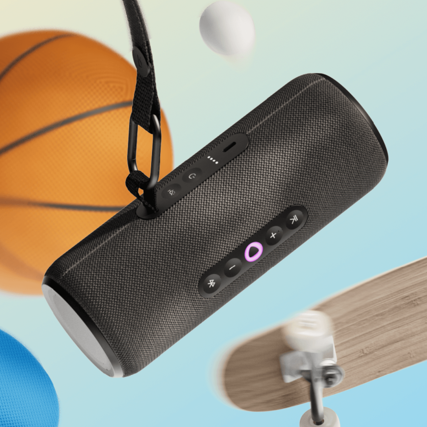 Аудиокомпоновка в колонке представлена низкочастотным динамиком размером 44 x 80 мм и мощностью 20 Ватт, а также высокочастотным динамиком диаметром 24 мм и мощностью 10 Ватт. Есть и два пассивных излучателя баса, поэтому звук сочный и для улицы отлично подходит, а в приложении можно вручную установить режим эквалайзера для определённого места или под жанр музыки.