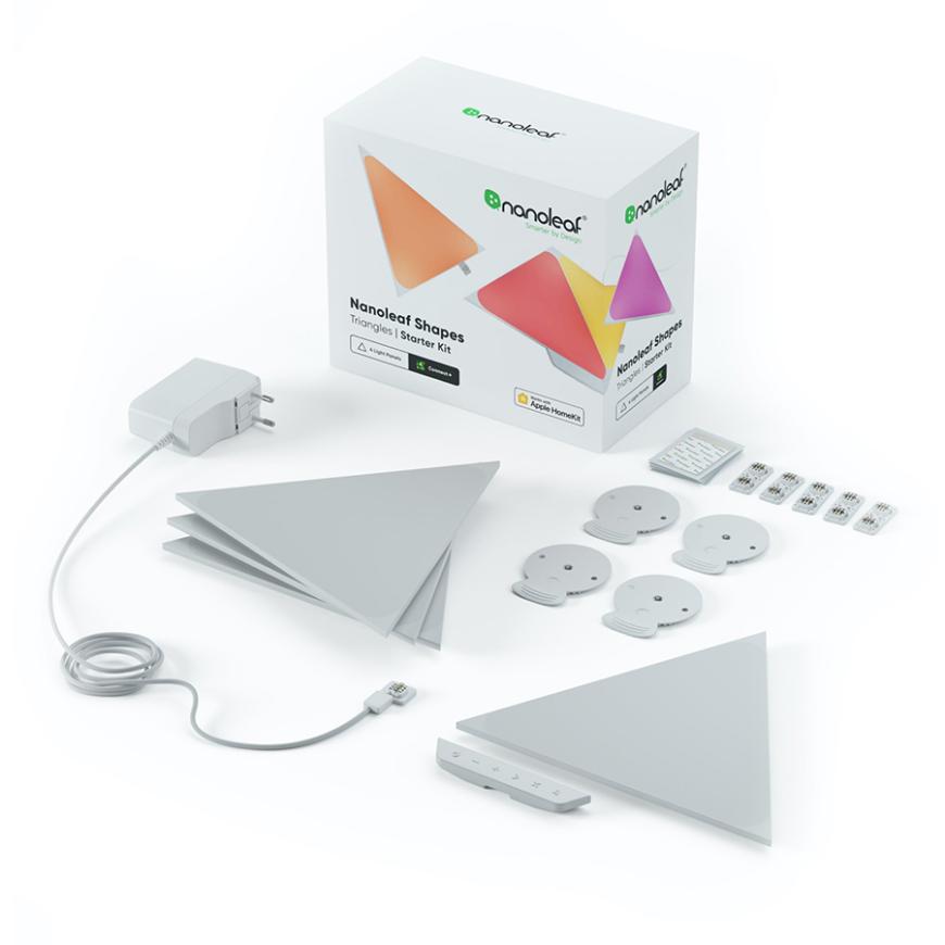 В наше время освещение перестало быть просто функциональным элементом в интерьере. Оно превратилось в настоящее искусство, способное создать уникальную атмосферу в любом помещении. Если вы хотите добавить оригинальности и индивидуальности вашему дому, то умная светодиодная панель Nanoleaf Shapes Triangles Starter Kit – это именно то, что вам нужно! Она позволит преобразить интерьер, а дополнительные модули можно приобретать отдельно и достраивать светодиодную мозаику. Данный набор включает 4 световые панели и всё необходимое для установки и работы комплекта.