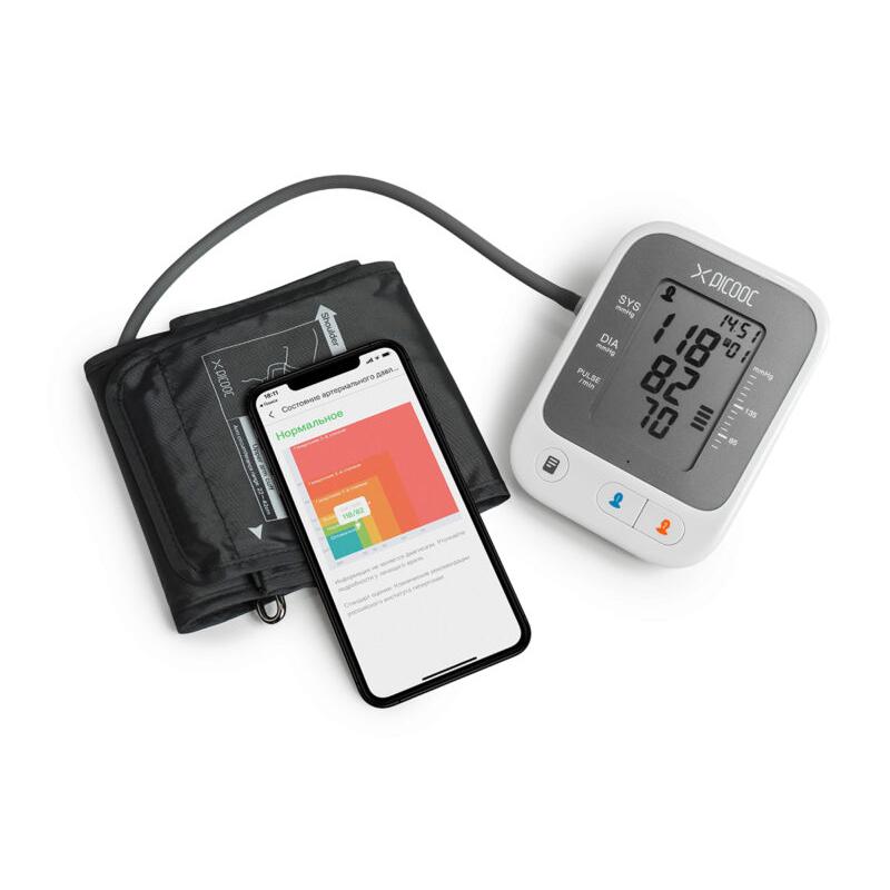 В контроле за здоровьем важны не только сиюминутные показатели, но и история изменений. С помощью модуля Wi-Fi (2,4 ГГц) устройство передаёт полученную информацию в бесплатное приложение, в котором можно увидеть график изменения артериального давления. Также можно сравнить свои показатели с рекомендуемыми по шкале Всемирной ассоциации здравоохранения. Память в приложении бесконечная, поэтому можно увидеть результаты измерений за любой период времени.