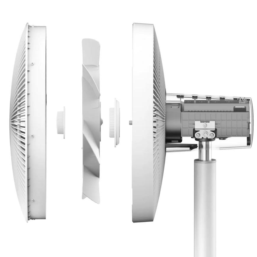 Благодаря компактным размерам, сдержанному дизайну и функции напольной или настолькой сборки Mi Smart Standing Fan 2 легко впишется в любое помещение. Особенно выделяется конструкция лопастей вентилятора. Они сделаны в форме крыльев и расположены в двух плоскостях. Такая конструкция позволяет создавать мягкий поток воздуха, имитирующий природный ветер. Причем настроить его скорость можно с высокой точностью - от 1 до 100.