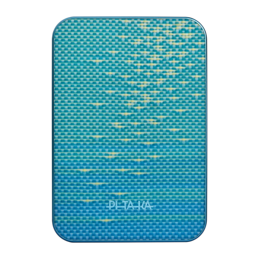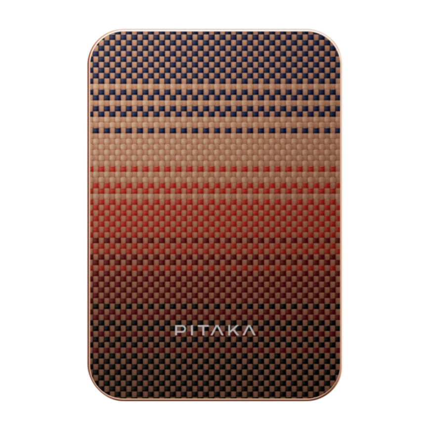 Обычно внешние аккумуляторы не выделяются яркой внешностью. Но аксессуар от PITAKA не мог получится скучным. Поверхность устройства изготовлена из арамидных волокон — материал буквально соткан по фирменной технологии, чтобы быть не только очень приятным на ощупь, но и устойчивым к износу и повреждениям. Он сочетается с матовым металлическим покрытием по бокам, создавая приятный контраст фактур. Расцветки же подобраны так, чтобы сочетаться с чехлами PITAKA, создавая гармоничный и целостный образ.