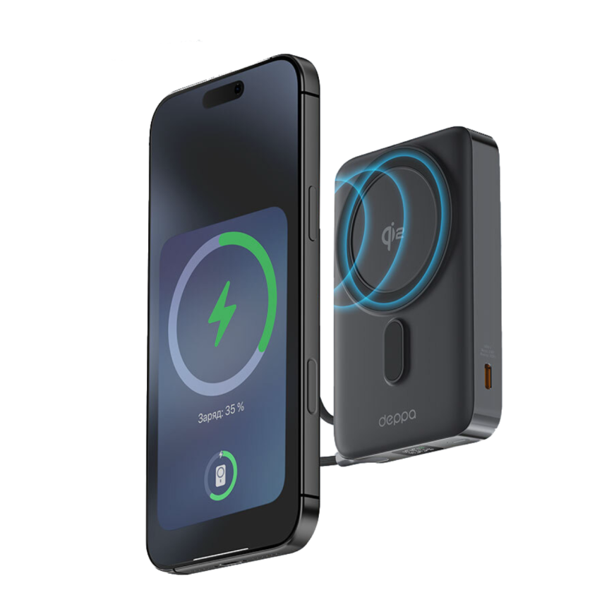 Когда смартфон на последнем процентах, а розетки нет даже на горизонте, вступает в дело Deppa NRG Qi2 – портативный аккумулятор, способный выручить в любой ситуации. Он поддерживает быструю беспроводную зарядку по новому стандарту Qi2, а ещё умеет “прилипать” к смартфону через MagSafe. Просто прикрепили к спинке смартфона и пошли по делам. Отличный вариант для тех, кто хочет заряжать гаджеты в пути без лишних проводов и головной боли.