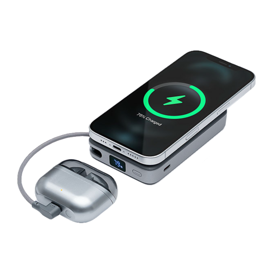 Этот пауэрбанк создан, чтобы быть не только мощным, но и удобным. На корпусе спрятана выдвижная “ножка”, превращающая его в подставку для смартфона – можно поставить устройство под углом и спокойно смотреть видео или вести звонок. А маленький LED-дисплей на корпусе показывает точный уровень заряда в процентах, чтобы вы знали, когда пора подзарядиться самому и когда пора подзарядить аккумулятор. Всё компактно, логично и без лишних движений – как и должно быть в современных аксессуарах.